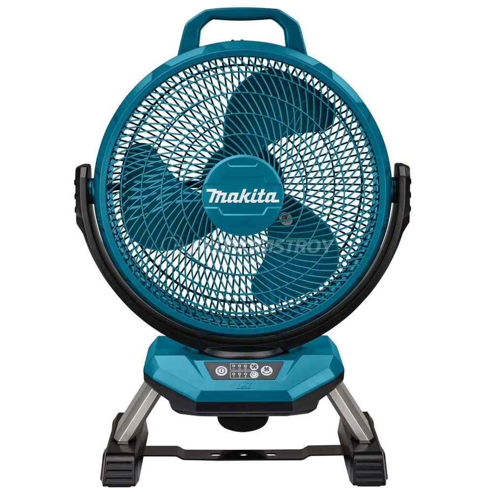 Вентилятор с возможностью питания от сети и от Li-Ion аккумулятора Makita напряжением 18 В. Промышленное исполнение, регулировка скорости, автоматическое отключение по таймеру.