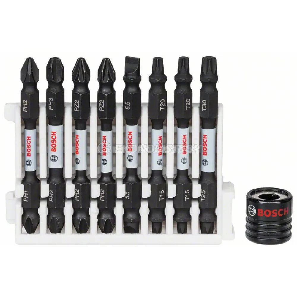 Набор бит BOSCH двусторонних ударных PH1/PH2, PH2/PH3, PH2/PZ2 (2шт), SL1x5.5, T15/T20 (2шт), T25/T30 + магнитная муфта