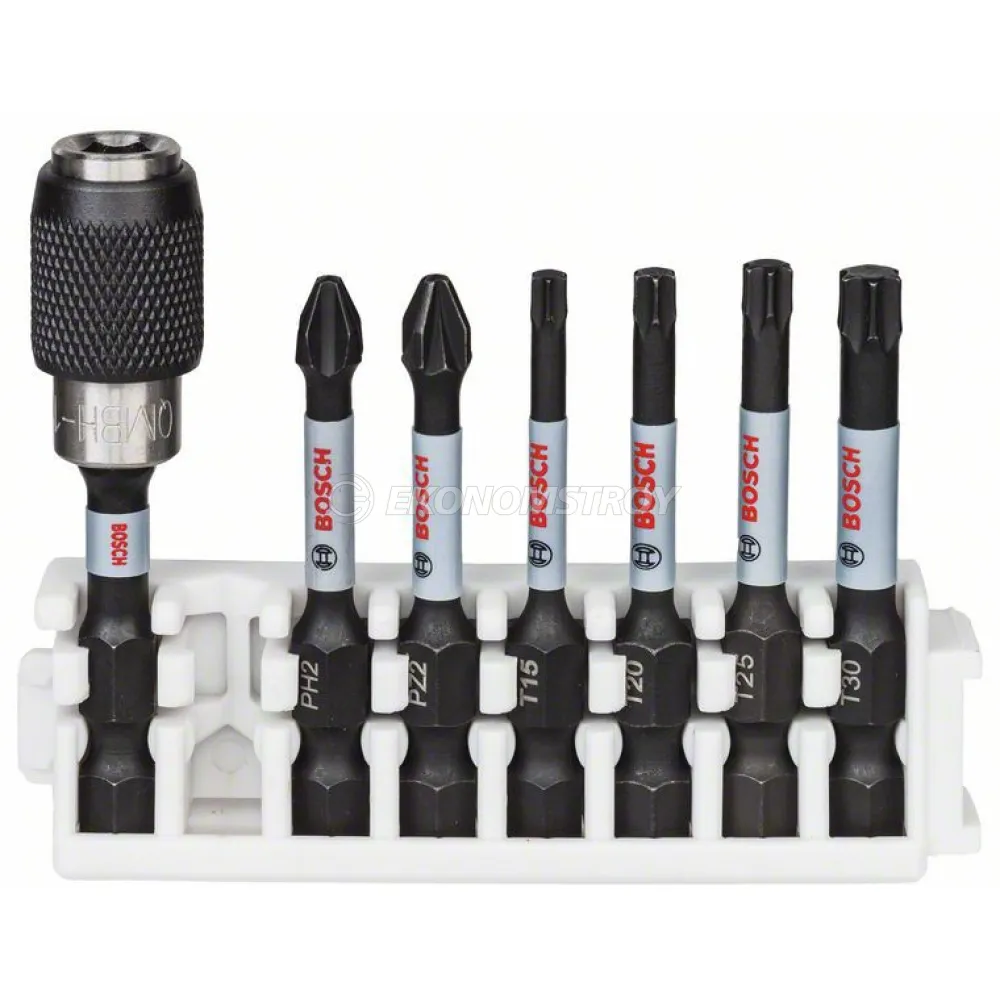 Набор бит BOSCH ударных PH2, PZ2, T15, T20, T25, T30 +держатель QuickRelease