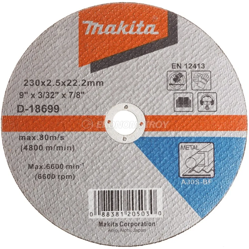 Отрезной круг MAKITA 230x2.5x22.23 Metal A30S