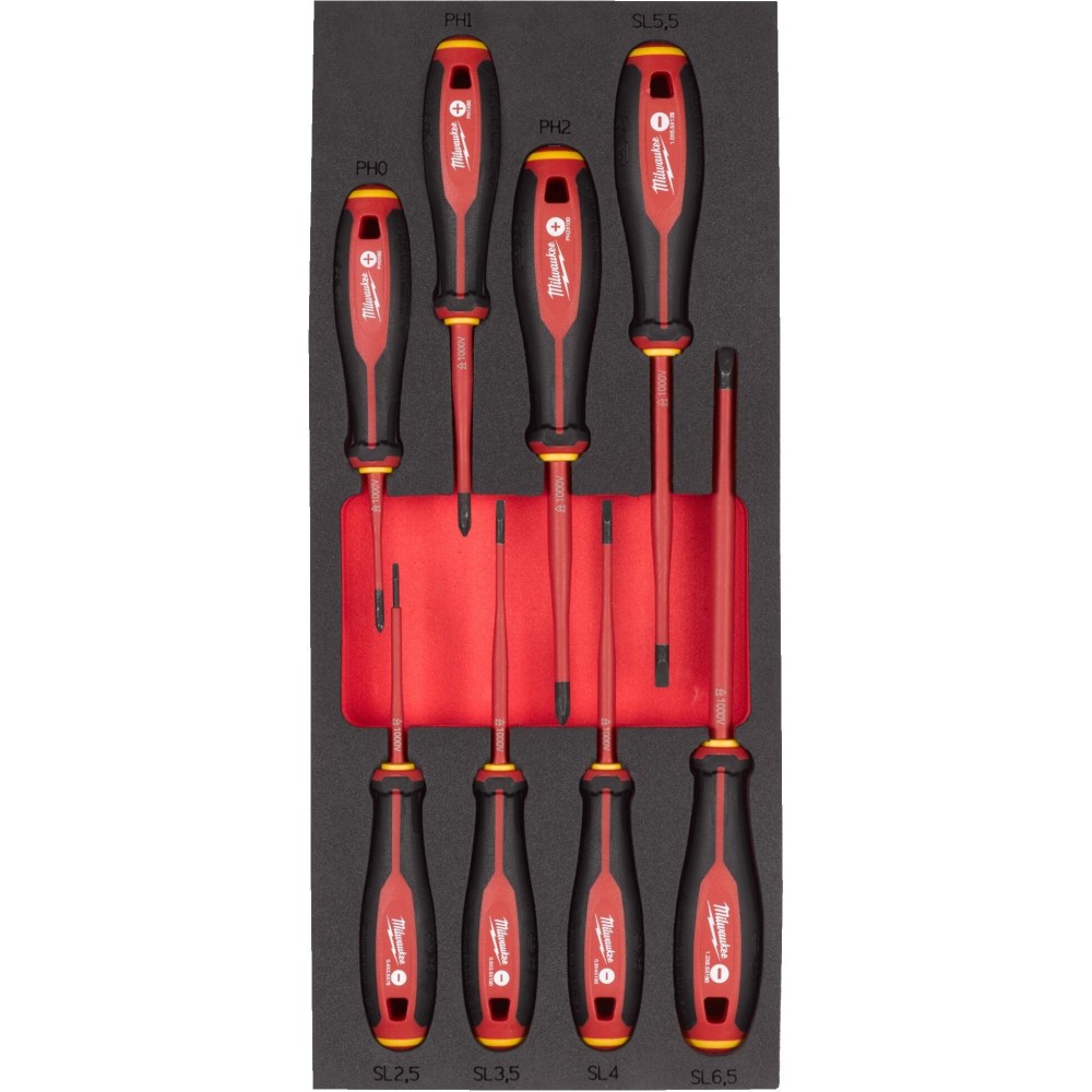 Отвертка Milwaukee Отвертки Milwaukee VDE 8шт (4932493249) (диэлектрические, трехгранные, в ложементе, PH0/PH1/PH2/SL2.5/SL3.5/SL4/SL5.5/SL6.5)