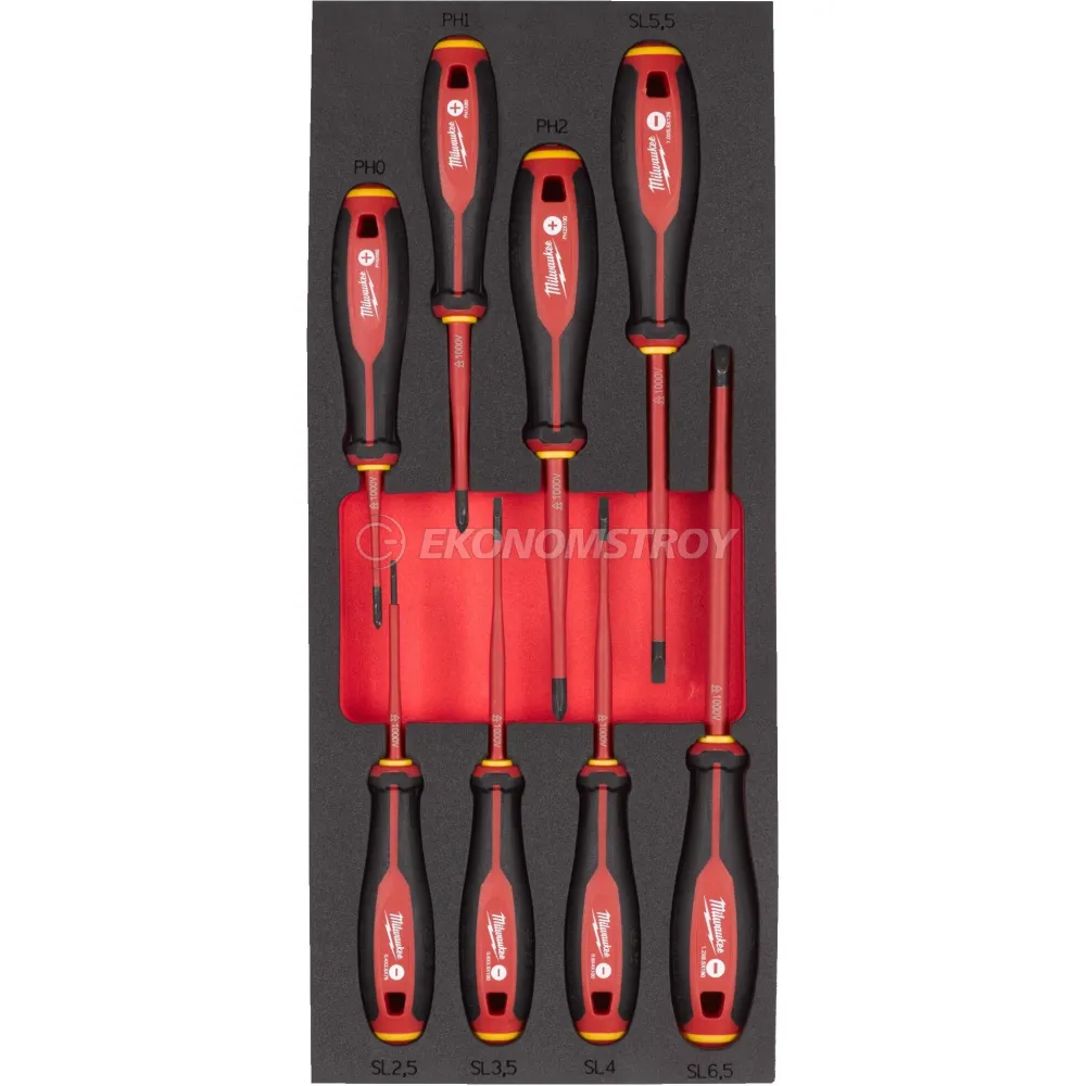 Отвертка Milwaukee Отвертки Milwaukee VDE 8шт (4932493249) (диэлектрические, трехгранные, в ложементе, PH0/PH1/PH2/SL2.5/SL3.5/SL4/SL5.5/SL6.5)