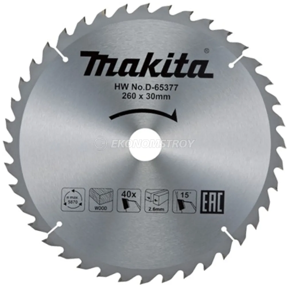 Пильный диск MAKITA 260x30x1.8x40T для дерева