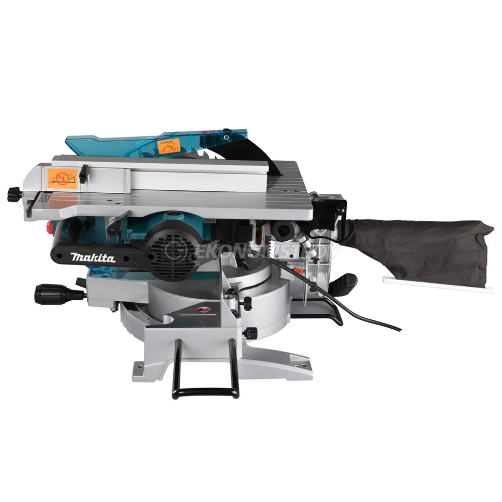 Комбинированная сетевая пила Makita LH1201FL предназначена для распила заготовок из дерева. Пила может выполнять прямые резы и работать под наклоном, а также использоваться в качестве циркулярной пилы – в верхней части расположена платформа для продольной резки длинных заготовок. Пильный диск с увеличенным размером 305 мм позволяет совершать пропилы глубиной до 95 мм. Регулировка глубины пропила для выборки пазов осуществляется без помощи дополнительных инструментов. Настроить угол наклона пильного диска можно по встроенной шкале. Пила оснащена плавным пуском двигателя и электрическим тормозом. Простое управление двумя кнопками позволяет распилить много заготовок в короткое время. Для точного распила предусмотрен лазерный указатель. Направляющая планка для распила на поворотном основании торцовочной пилы позволяет выполнить аккуратный срез. Для комфортной работы инструмент оснащен подсветкой, вертикальными тисками и держателями для длинных заготовок