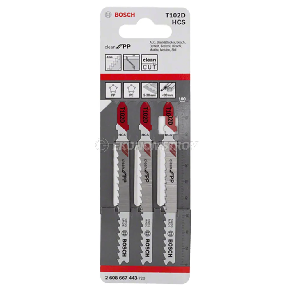 Пилка лобзиковая BOSCH ЛОБЗИКОВЫЕ ПИЛКИ T102D CleanPP 3 шт.