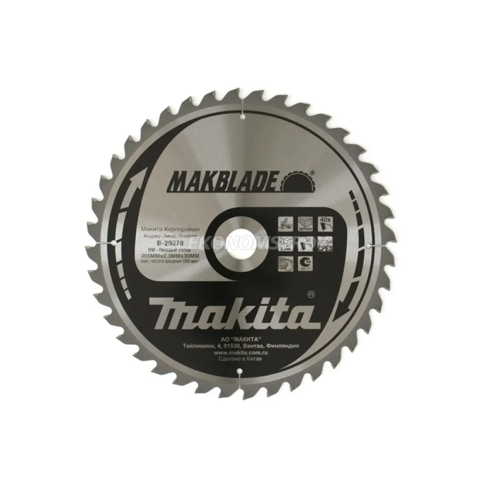 Твердосплавный диск высокого класса с низким износом для долгой работы. Диск подходит для беспроводных торцовочных пил. Закаленное и точно отбалансированное лезвие способно поглощать удары и обеспечивает точный и прямой рез. Купить товар – Диск пильный для дерева Makblade, HW, 305×2.3×30 мм, 40T, 5G, ATB Makita B-29278 (аналог: B-08997), по выгодной цене очень просто, достаточно положить товар в «корзину» и оформить заказ или позвонить нам по телефону, так же можно для Вашего удобства, отправить заявку на Е-майл.