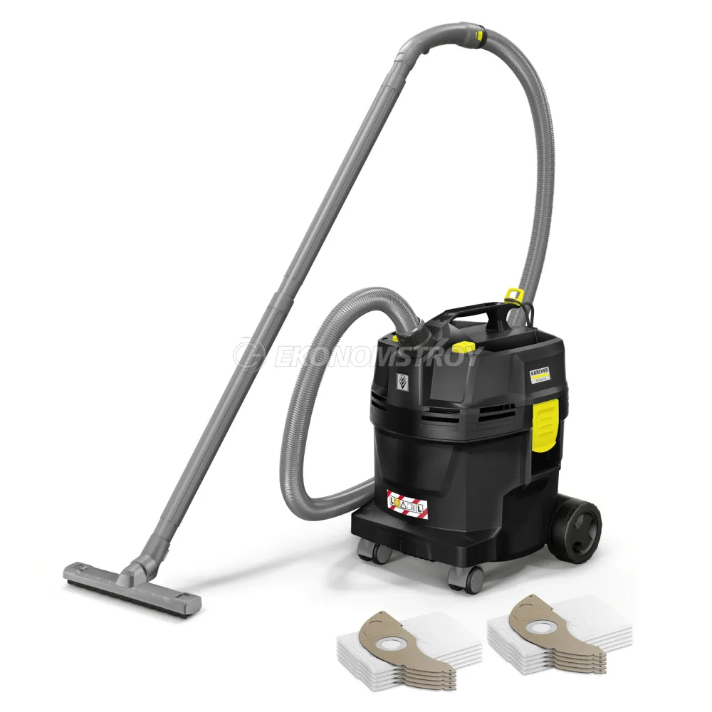 NT 22/1 Ap L также может быть рекомендован для сбора малоопасной пыли класса L (гипс (CaSO4), сульфат кальция, наполнитель на бумаге, краски и лаки, известь (CaCO3), удобрения, мел, белая краска, зубная паста, слюда, глина и пр.) NT 22/1 Ap L способен легко убирать жидкости, крупный мусор и небольшие количества мелкой пыли.