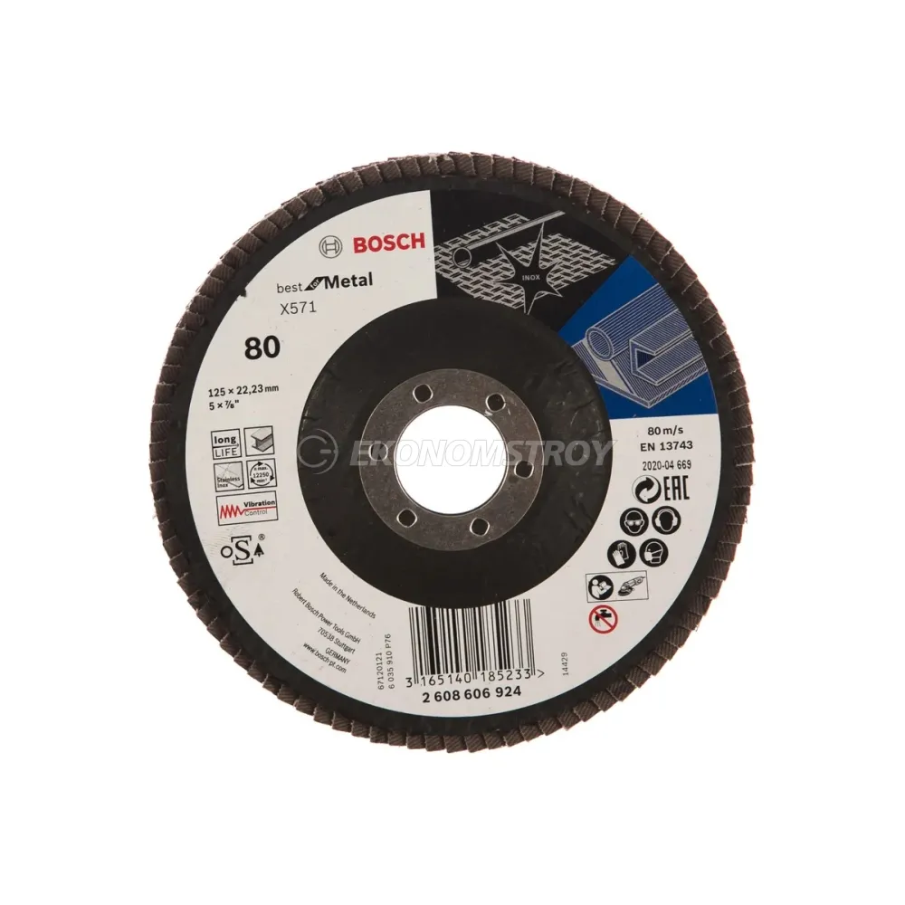Шлифкруг лепестковый BOSCH 125x10x22.23 K80 X571 Best for Metal