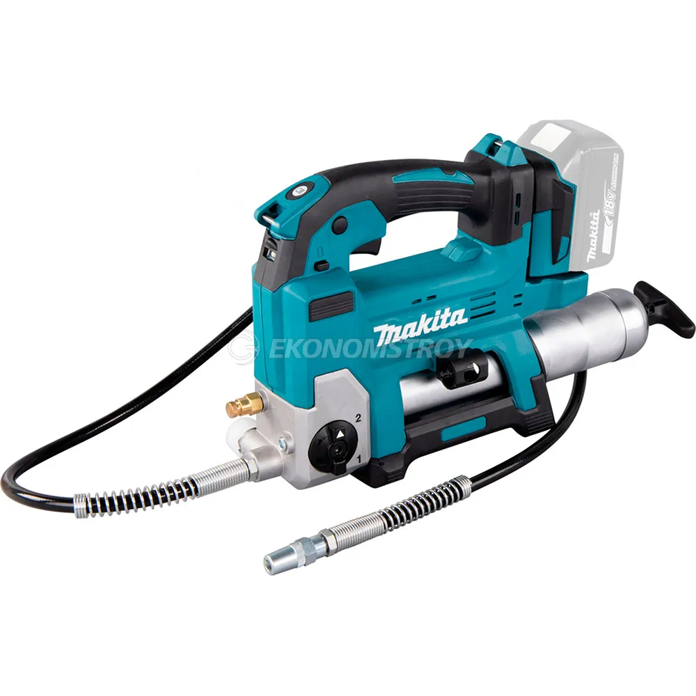 Аккумуляторный шприц для смазки Makita LXT DGP180Z применяется для технического обслуживания тяжелой, сельскохозяйственной или другой крупной техники. Автоматическое изменение расхода (или скорости дозирования). Двигатель обеспечивает максимальное давление до 69Мпа. Два режима выбора скорости (медленный / автоматический). Триггер с переменной скоростью позволяет регулировать скорость подачи смазки. Кнопка блокировки для удобства пользователя при длительной работе. Смазка может загружается прямо в корпус