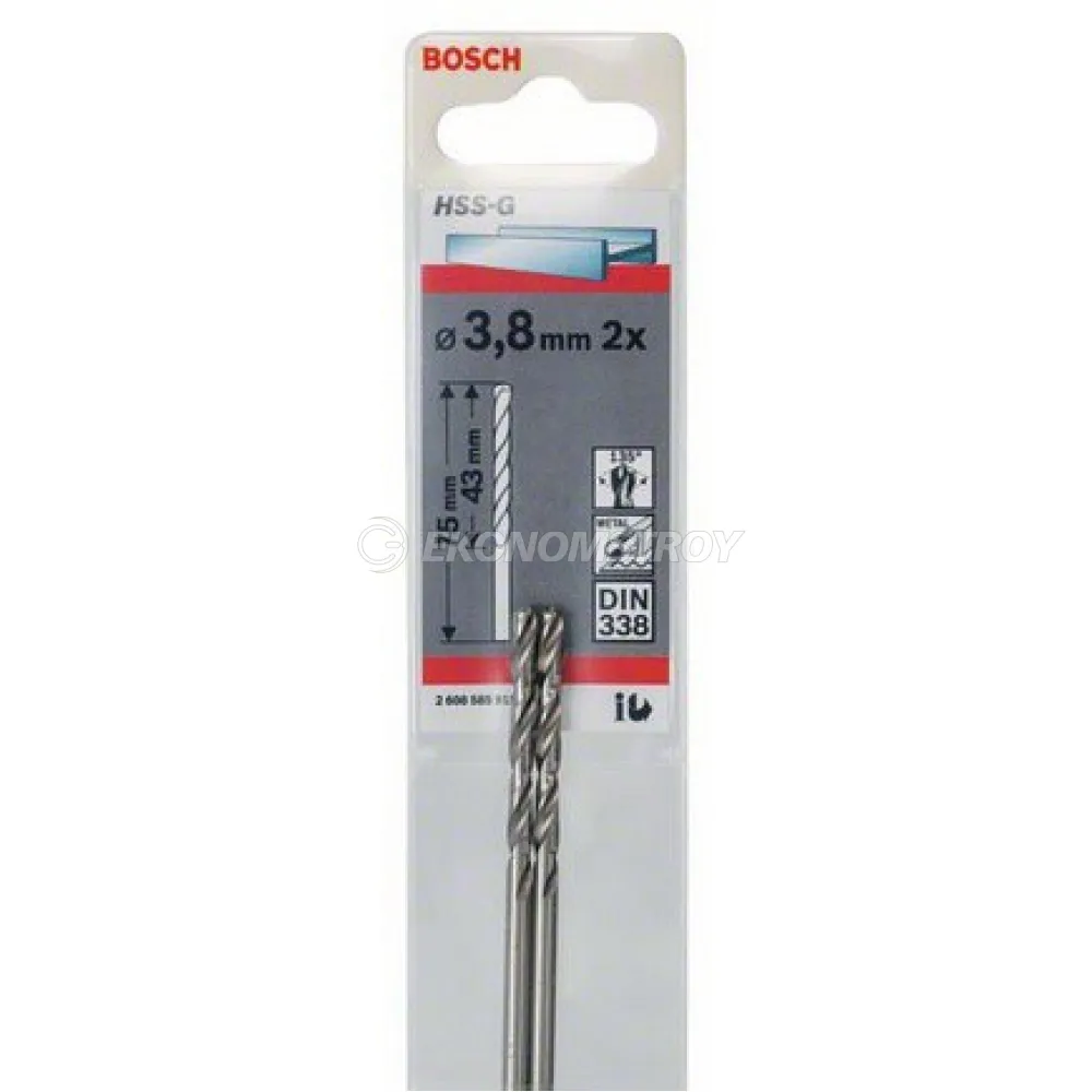 Сверло по металлу BOSCH HSS-G СВЕРЛА 3.8ММ 2 шт.