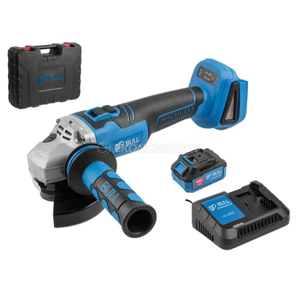 Модель BULL 1812 R оснащена надежным бесщеточным двигателем, что продлевает срок службы как самого инструмента, так и аккумуляторов в 2 раза; снижает энергопотребление на 50%; делает инструмент компактнее, а работу продуктивнее; исключает необходимость замены угольных щеток.. В УШМ так же установлены пылезащитные фильтры, способные эффективно охлаждать плату управления. Кроме того, фильтры препятствуют проникновению мелкоабразивной металлической стружки в двигатель.. Двухуровневая регулировка оборотов поможет выполнить работы по обработке разных поверхностей, не повреждая их.. Интеллектуальная плата управления обеспечивает защиту от перегрузки, перегрева и заклинивания оснастки.. Двигатель установлен на надежных подшипниках, которые оснащены лабиринтным уплотнением.. Быстрозажимной кожух, антивибрационная рукоятка с возможностью установки в 3 позициях, малый вес, низкий уровень шума обеспечат максимальный комфорт использования.