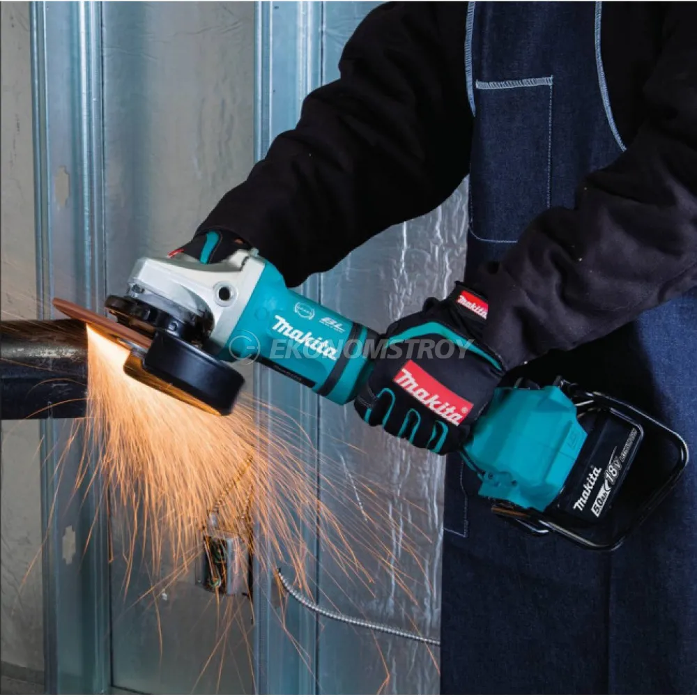 Машина шлифовальная угловая аккумуляторная Makita DGA901ZU (б/акк,б/зу) с бесщёточным двигателем и блокировкой шпинделя для быстрой и удобной смены оснастки. Резьба шпинделя М14, диаметр посадочного отверстия 22,2 мм. Максимальное число оборотов холостого хода 6000 об/мин. Есть функция плавного пуска, защитная муфта для безопасности пользователя и инструмента, защита от перегрева двигателя. Функция блокировки клавиши включения исключает непреднамеренный запуск оборудования. Боковая рукоятка для надёжного удержания во время интенсивной работы. Положение кожуха можно регулировать. Шлифмашинка поставляется без аккумулятора и зарядного устройства. Вес товара 5,2 кг